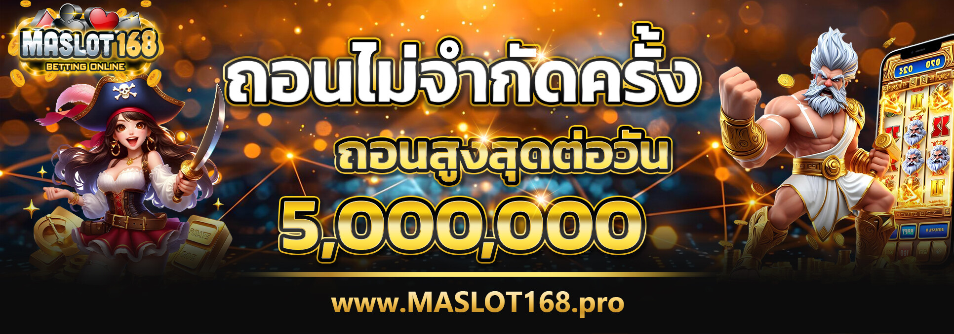 สมาชิก MASLOT168 ถอนต่อวันไม่จำกัดครั้ง/วัน ถอนสูงสุดถึง 5,000,000 บาท/วัน